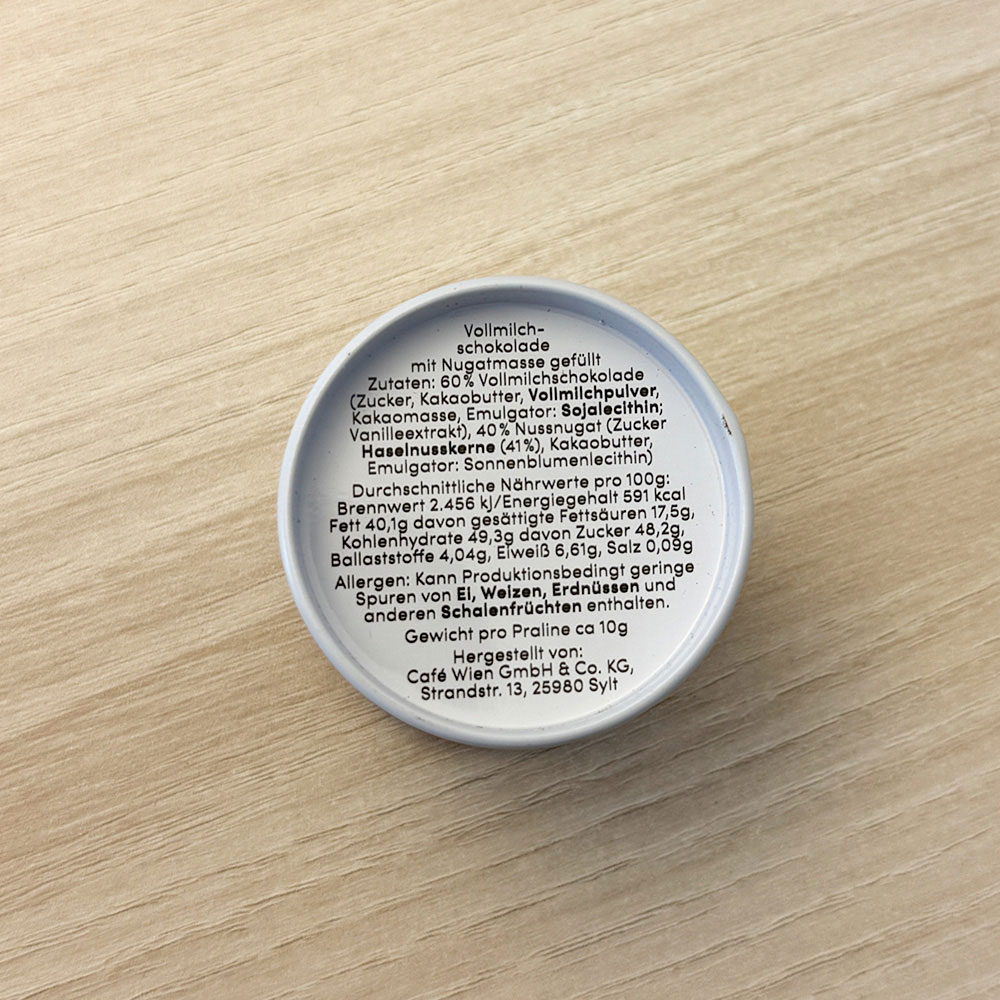 Ein exklusiver Gruß von der Insel Sylt: Diese edle Praline aus dem Hause Café Wien verbindet handwerkliche Konditorkunst mit einer hochwertigen Präsentation. Ein kleiner Moment Luxus, verpackt in einer langlebigen Metalldose.